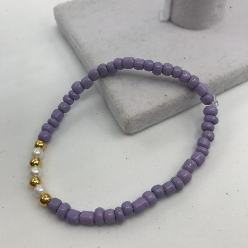 Artikelnummer: ra47 OverzichtLeuke 4 mm rocaille armbanden met 3 nn oareltjes en gouden tussenkralen.
